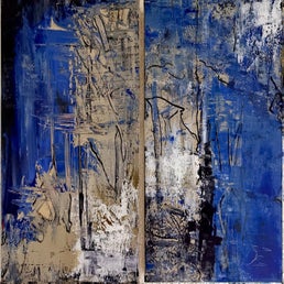 Masks two piece. 40x30x3,5 (2x). Acryl op canvas.